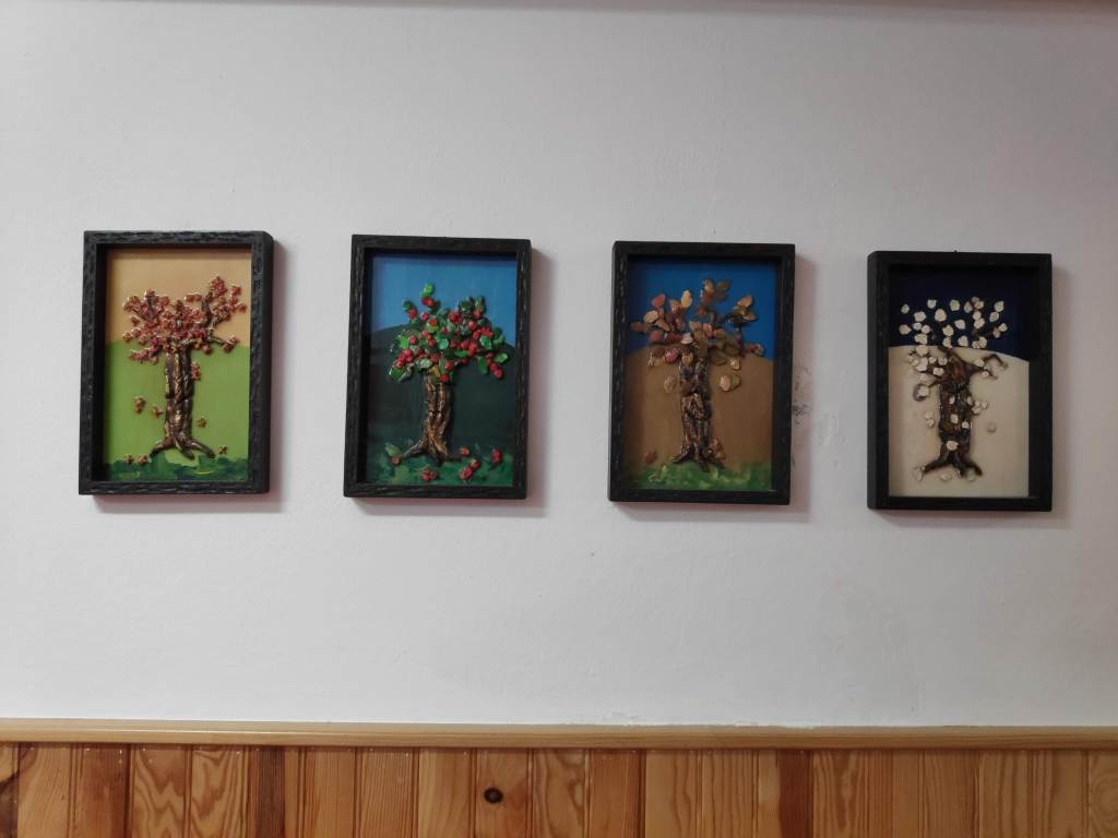 Bem no canto da nova sala de cinema, encontramos o painel QES de LÉS a LÉS, mais uma atividade desenvolvida pelo centro para a ocupação dos tempos livros. Todos os meses um utente vai para a cozinha e ensina/ prepara com os cozinheiros um prato tadicional da sua zona. Soubemos que em janeiro chegaram à Ucrânia, fazendo uma sopa tradicional.
